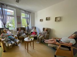 Unsere Tagespflege liegt idyllisch im Grünen, in mitten von Feldern und Wiesen, fußläufig der Werra. Der neugestaltete Außenbereich umgeben von Blumen, lädt zum Verweilen, sportlichen Aktivitäten oder einer schönen Kaffeerunde ein.